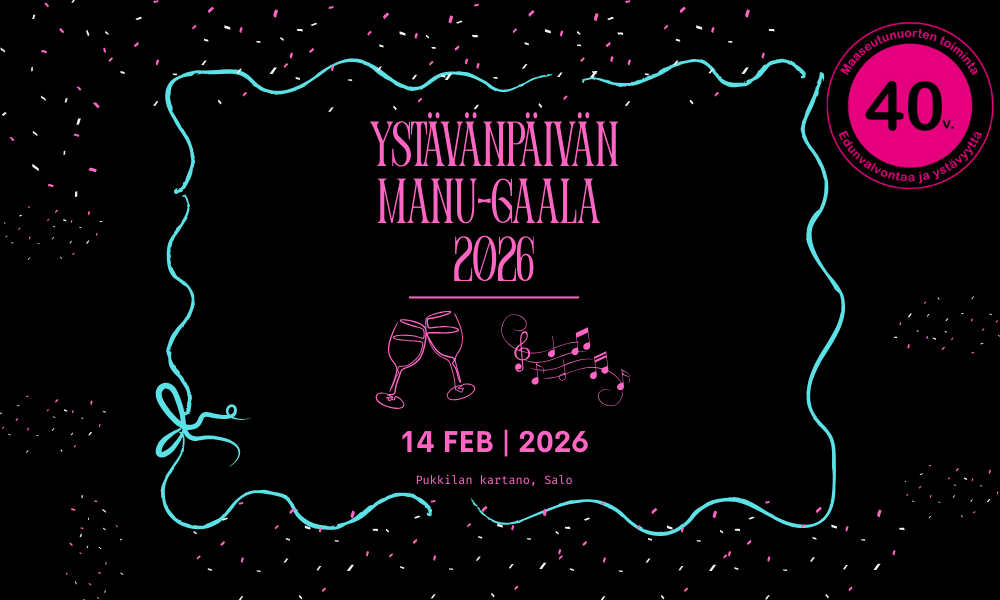 Varsinais-Suomen maasetunuorilla on ilo kutsua nuoret ja nuorenmieliset viettämään ystävänpäivägaalaa hyvän ruuan, musiikin ja yhdessäolon merkeissä Pukkilan kartanoon Saloon.